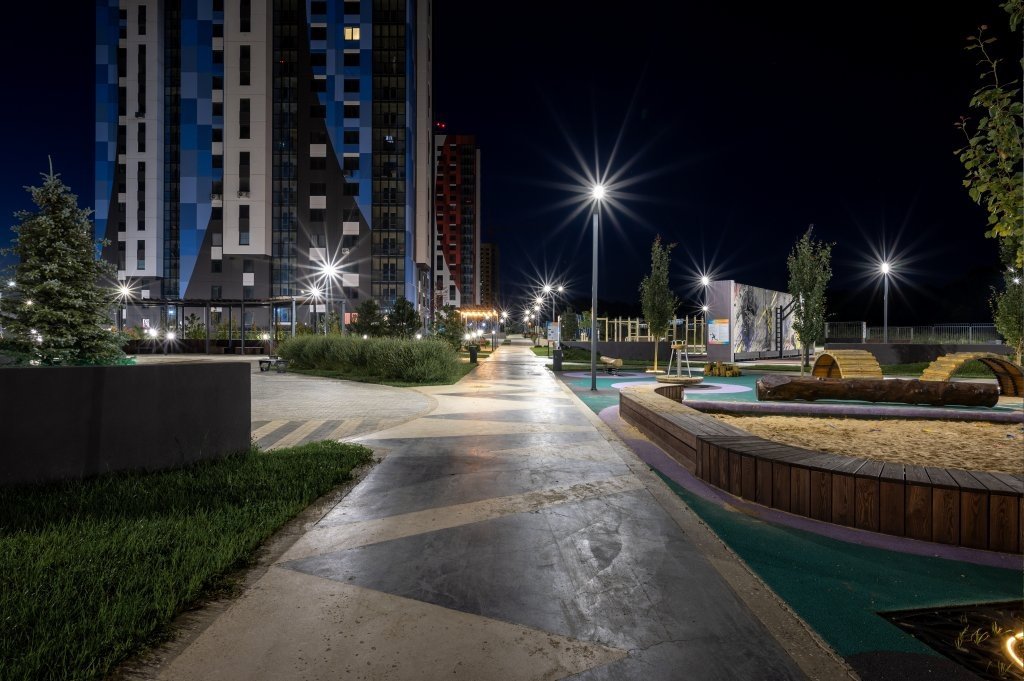 Территория ЖК огорожена и находится под охраной, ведется круглосуточное видеонаблюдение. Зона парковки вынесена за пределы зоны благоустройства, а внутри двора – детские площадки, пешеходные дорожки и уютные места для отдыха с арт-объектами.