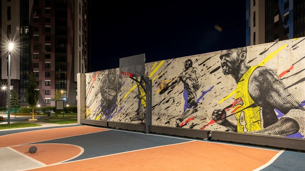 В ЖК «Космос 2.0» реализовано несколько зон для активных игр и занятий функциональными тренировками Workout.